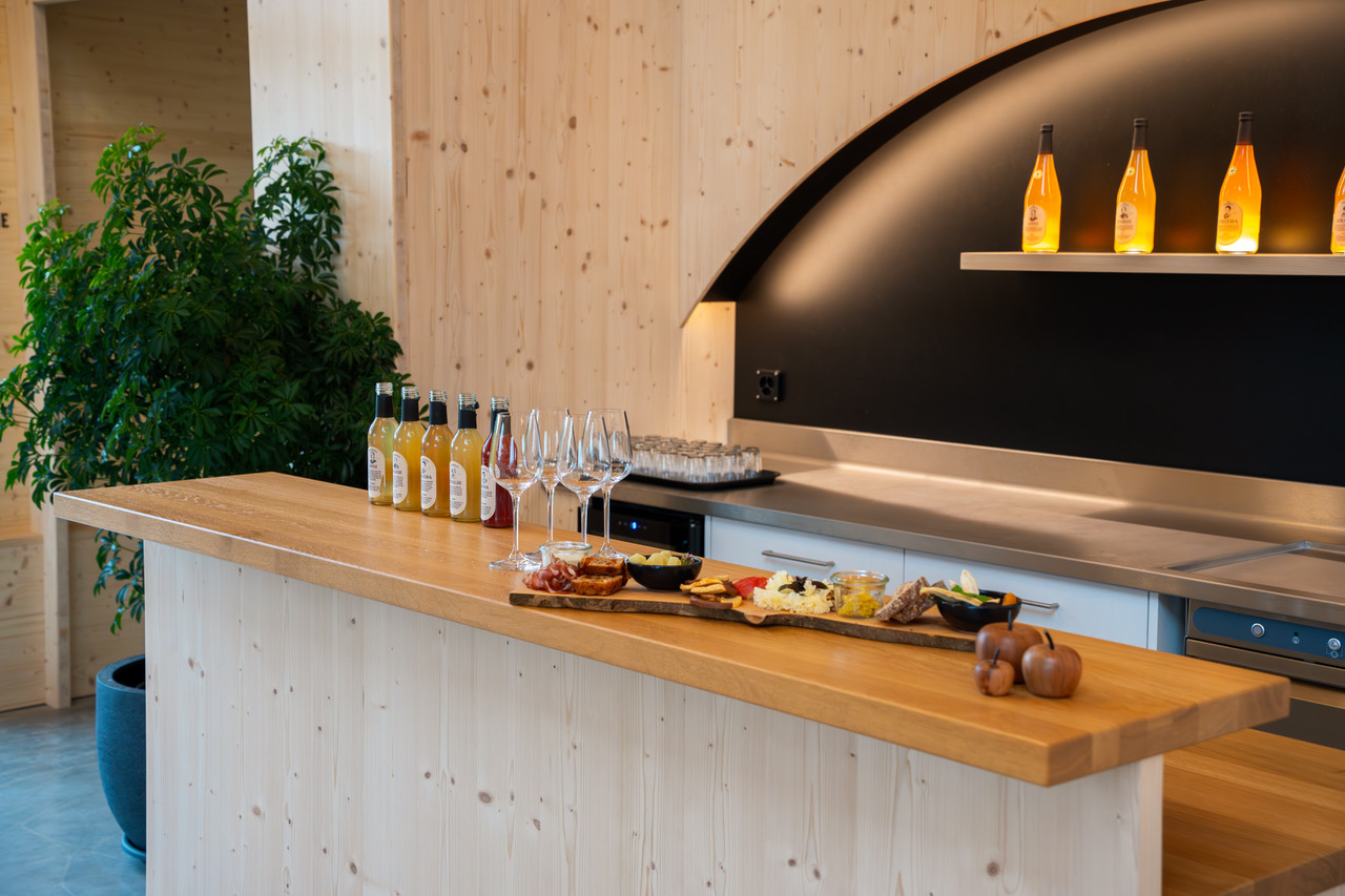 «Mit wagen Ideen im Kopf meldeten wir uns bei Christoph Kuhn. Er und seine Leute haben daraus eine wunderschöne, beleuchtete Degustationswand und eine fahrbare, multifunktionalen Theke gezaubert. Wir und auch unsere Gäste sind immer wieder begeistert davon. Danke! »